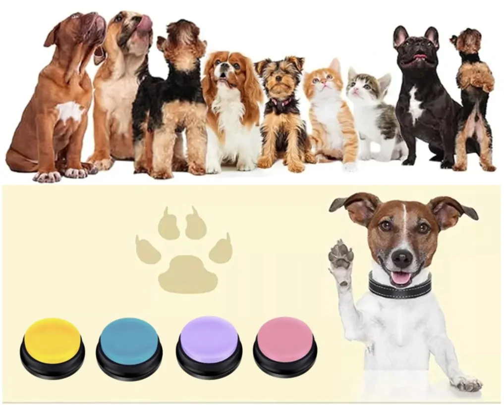 Chcesz ułatwić komunikację ze swoim pupilem i wzbogacić jego trening? Zestaw 4 dźwiękowych przycisków to innowacyjne narzędzie, które sprawi, że nauka stanie się przyjemnością!