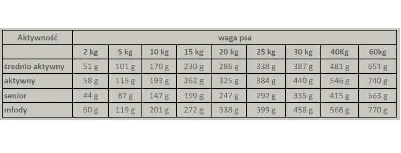 Energia metaboliczna na kg: 3640 kcal / 15230 kJ.