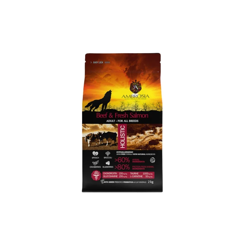 Ambrosia sucha karma dla psa z wołowiną i łososiem dla wszystkich ras hipoalergiczna
