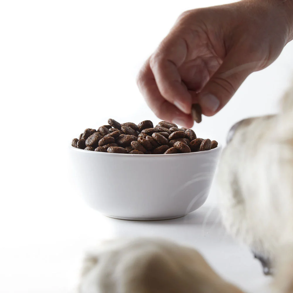- Karma dostępna jest w średniej wielkości chrupkach, idealnych dla wszystkich ras psów.