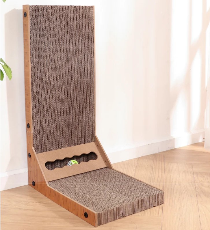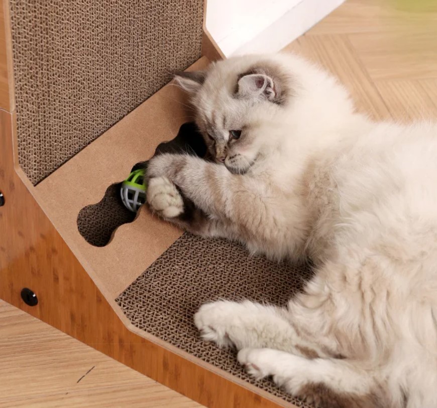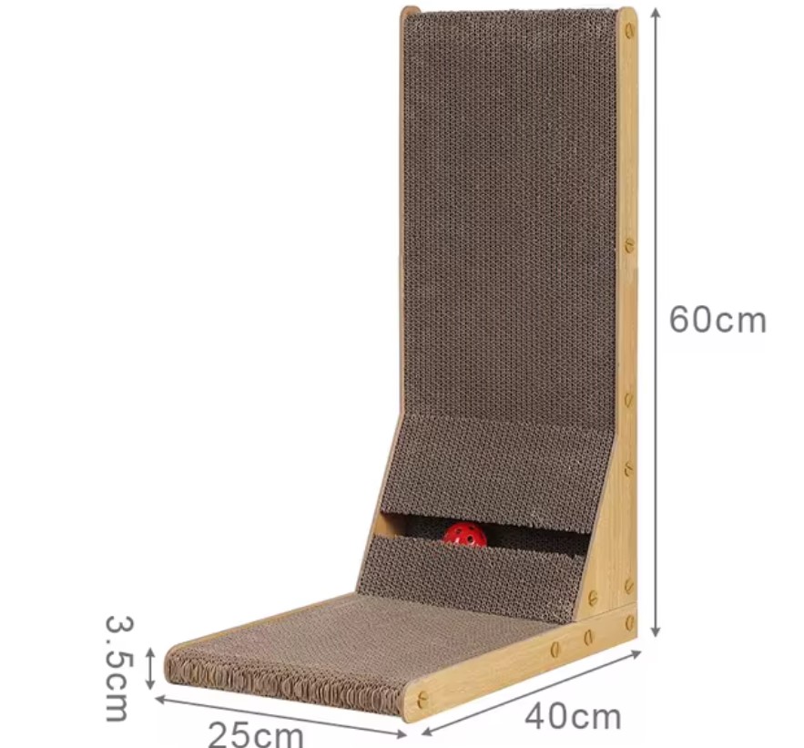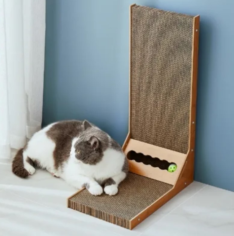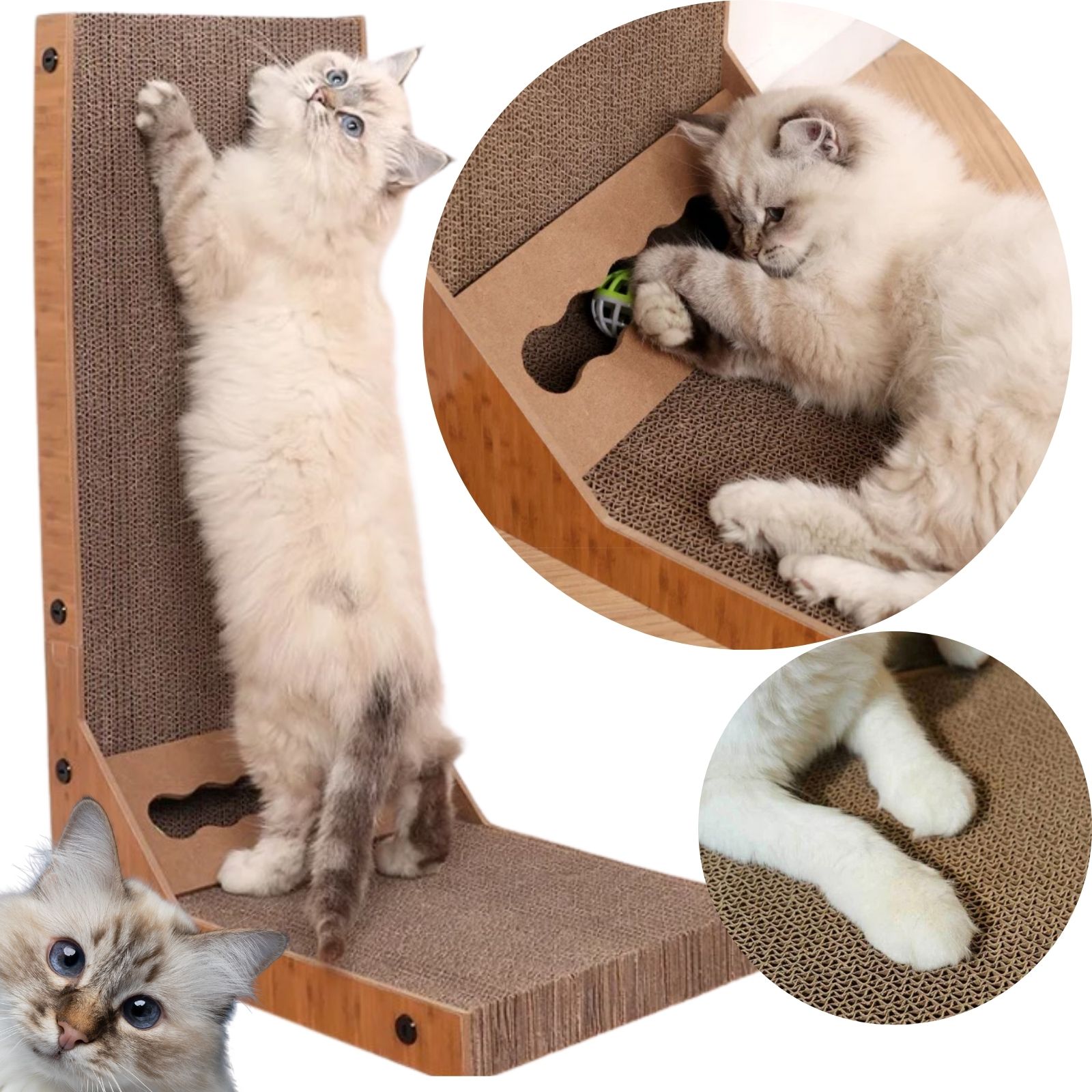 Drapak narożny dla kota tekturowy 60x40cm z piłką i kocimiętką – świetna rozrywka dla Twojego kota!