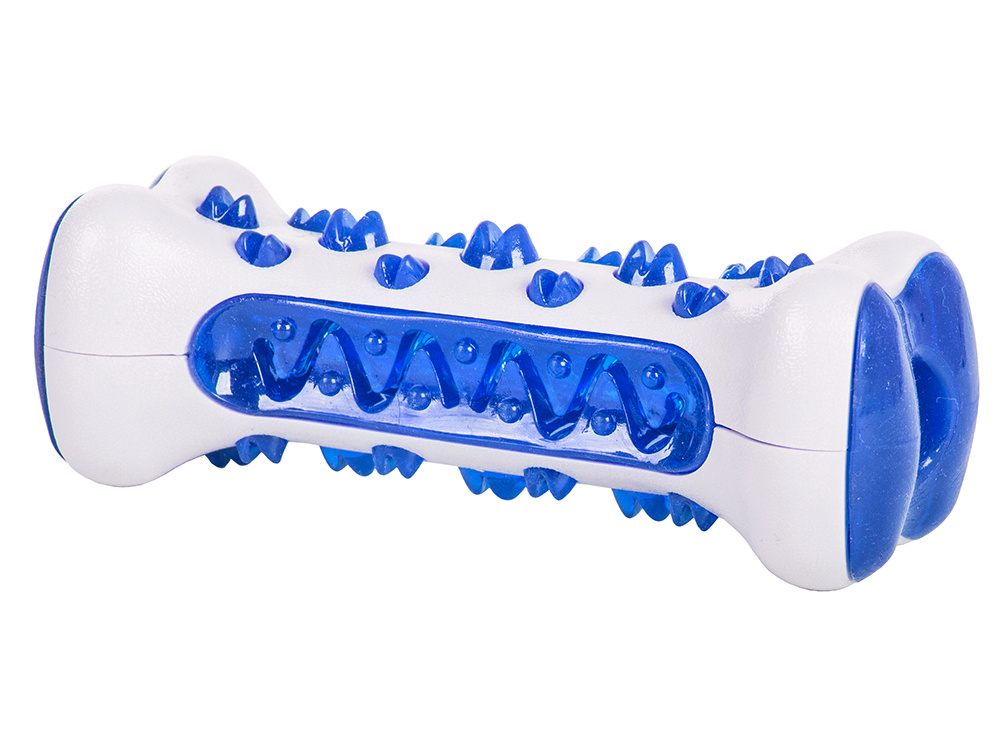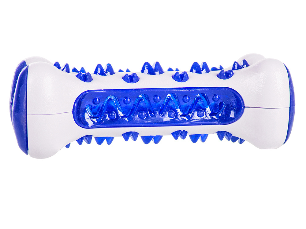 Gryzak, który zadba o higienę zębów Twojego psa! Doskonała zabawa, podczas której Twój pupil wymasuje sobie dziąsła i oczyści kiełki. Przyjazny i bezpieczny gryzak dla psa, pomagający w utrzymaniu czystości uzębienia naszego pupila. Gryzak pomaga usuwać nagromadzone pożywienie, płytkę nazębną i kamień.