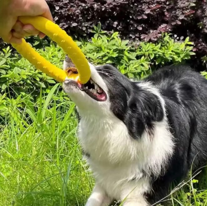 - Bezpieczny dla zębów i dziąseł – chroni jamę ustną psa podczas intensywnego gryzienia i szarpania.