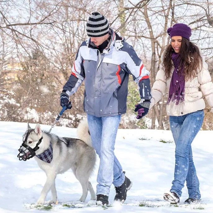 - Miękkie neoprenowe paski nie obcierają pyska ani szyi