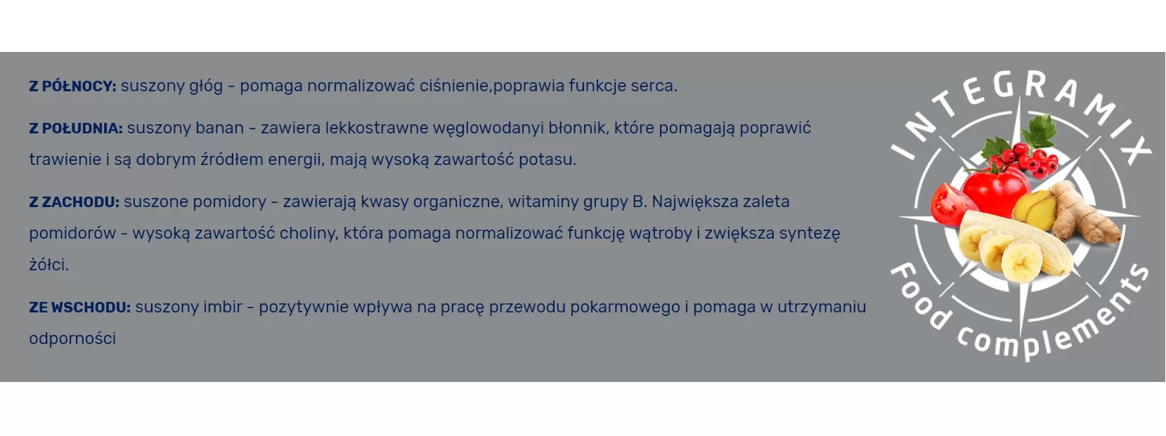 - Formuła ІNTEGRAMIX: suszone pomidory, imbir, głóg i banany – dla ogólnego wsparcia zdrowia ulubieńca