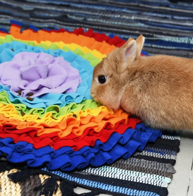 - W następnym kroku możesz ukryć smakołyki w całej macie pod kilkoma warstwami tkaniny. Twoje zwierzę na pewno wyczuje smakołyki przez tkaninę. Jeśli Twój zwierzak nie znajdzie ukrytych przysmaków po kilku próbach, pomóż mu je znaleźć.