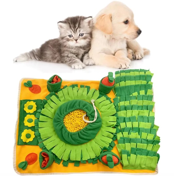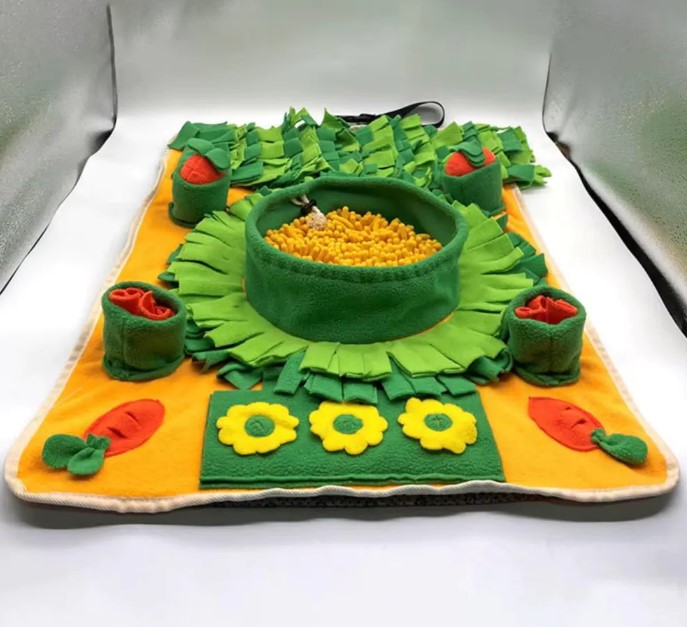 - Zabawa polega na tym aby ukryć smakołyki w macie a zadaniem pupila jest je odnalezienie.