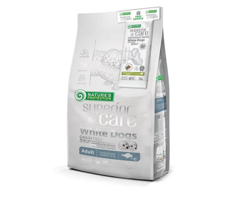 Zalety karmy Nature’s Protection Superior Care White Dogs Adult Small Fish: