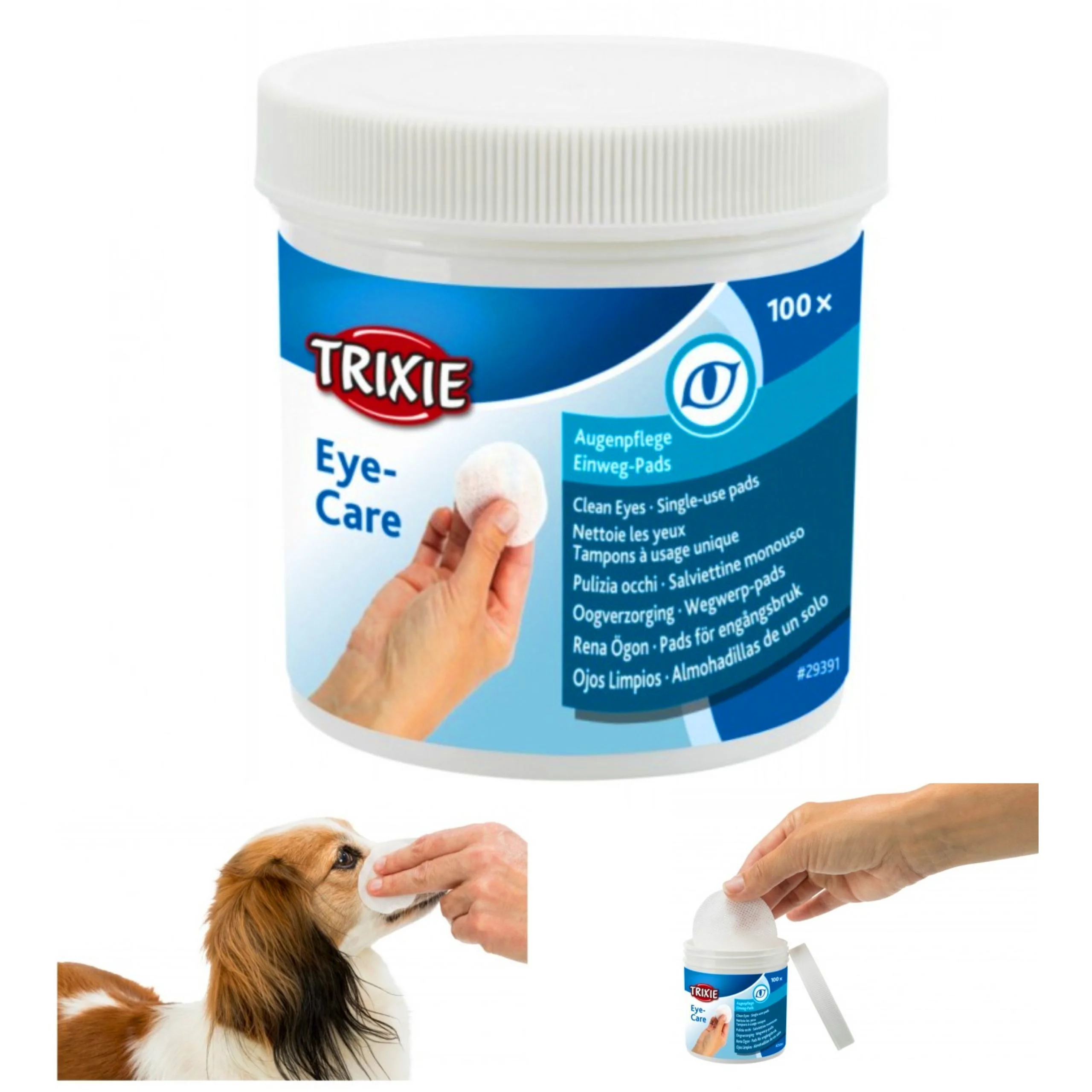 Chusteczki do oczu dla psa, kota, królika i innych małych zwierząt marki Trixie.