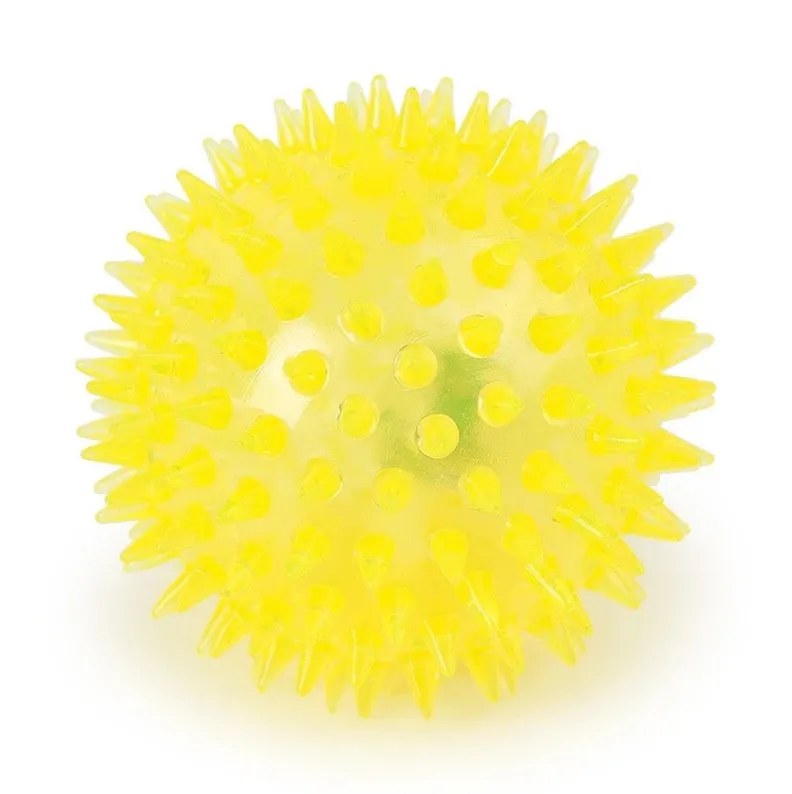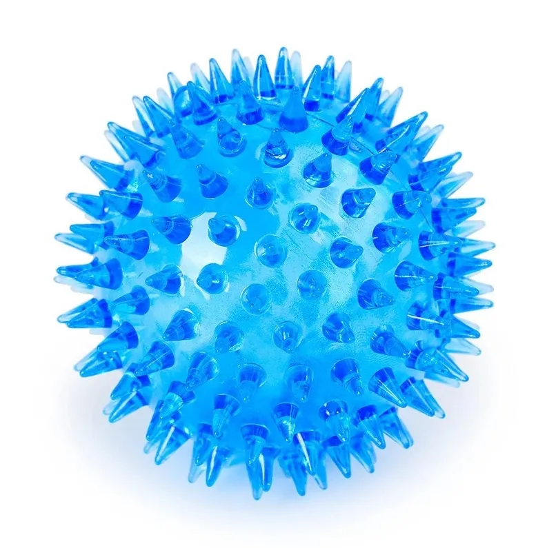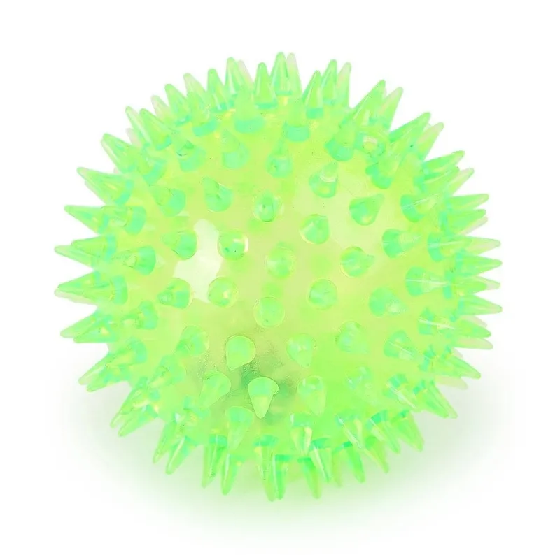 - Kolorowe światła – po przygryzieniu lub uderzeniu piłka świeci i migocze, co sprawia, że jest widoczna nawet w ciemności.