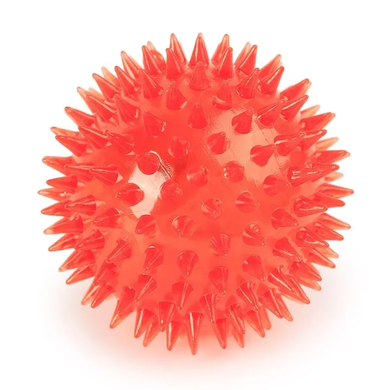 - Piszczący dźwięk – piłka wydaje przyjemny dźwięk po naciśnięciu, co dodatkowo zachęca do zabawy.