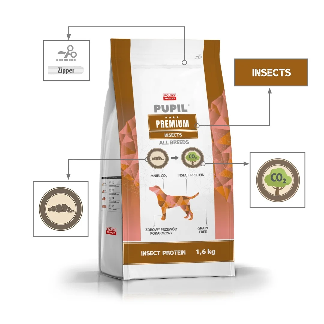 Najważniejsze cechy suchej karmy PUPIL PREMIUM INSECTS 12kg: