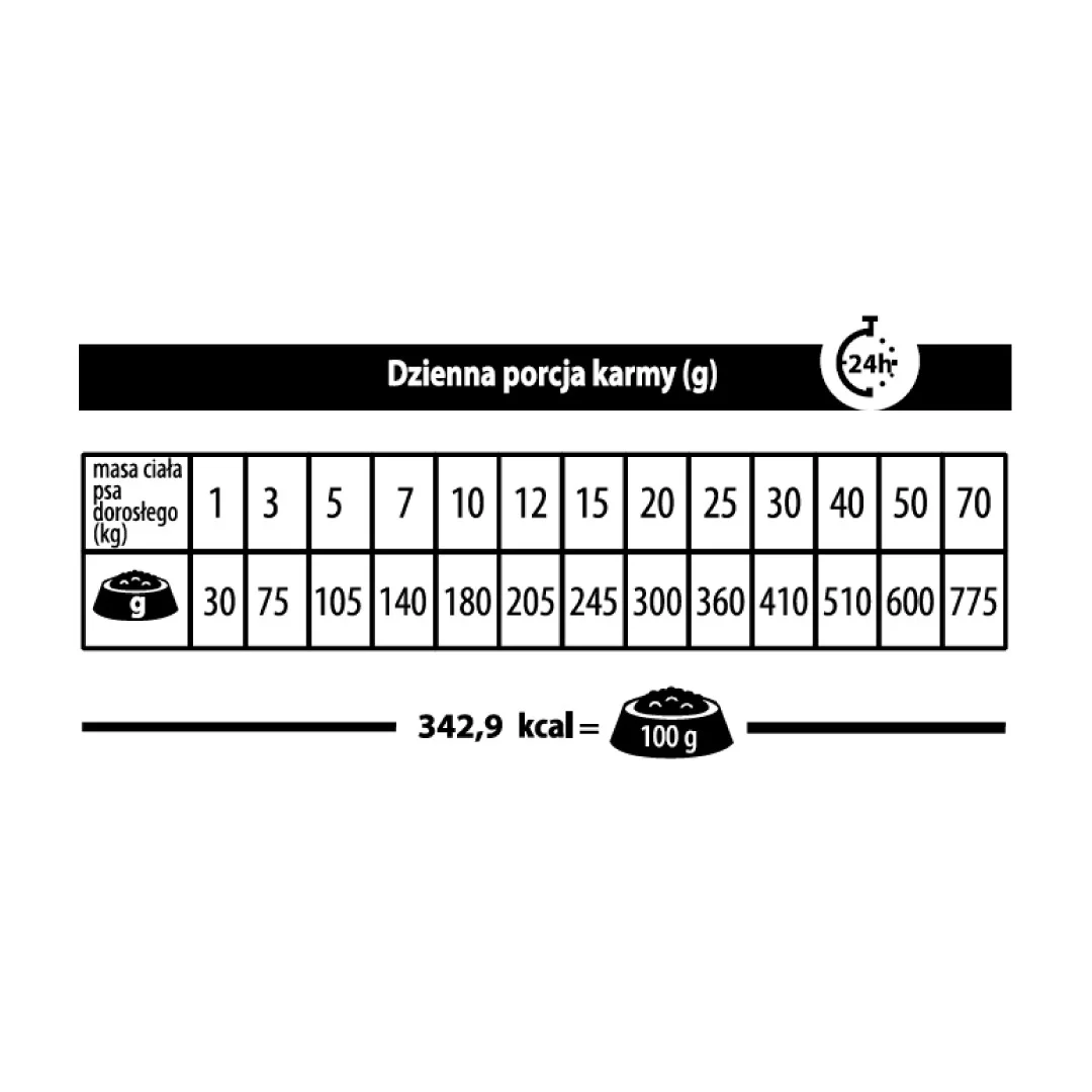 - Pełnoporcjowy posiłek w postaci suchej karmy dla psów dorosłych wszystkich ras