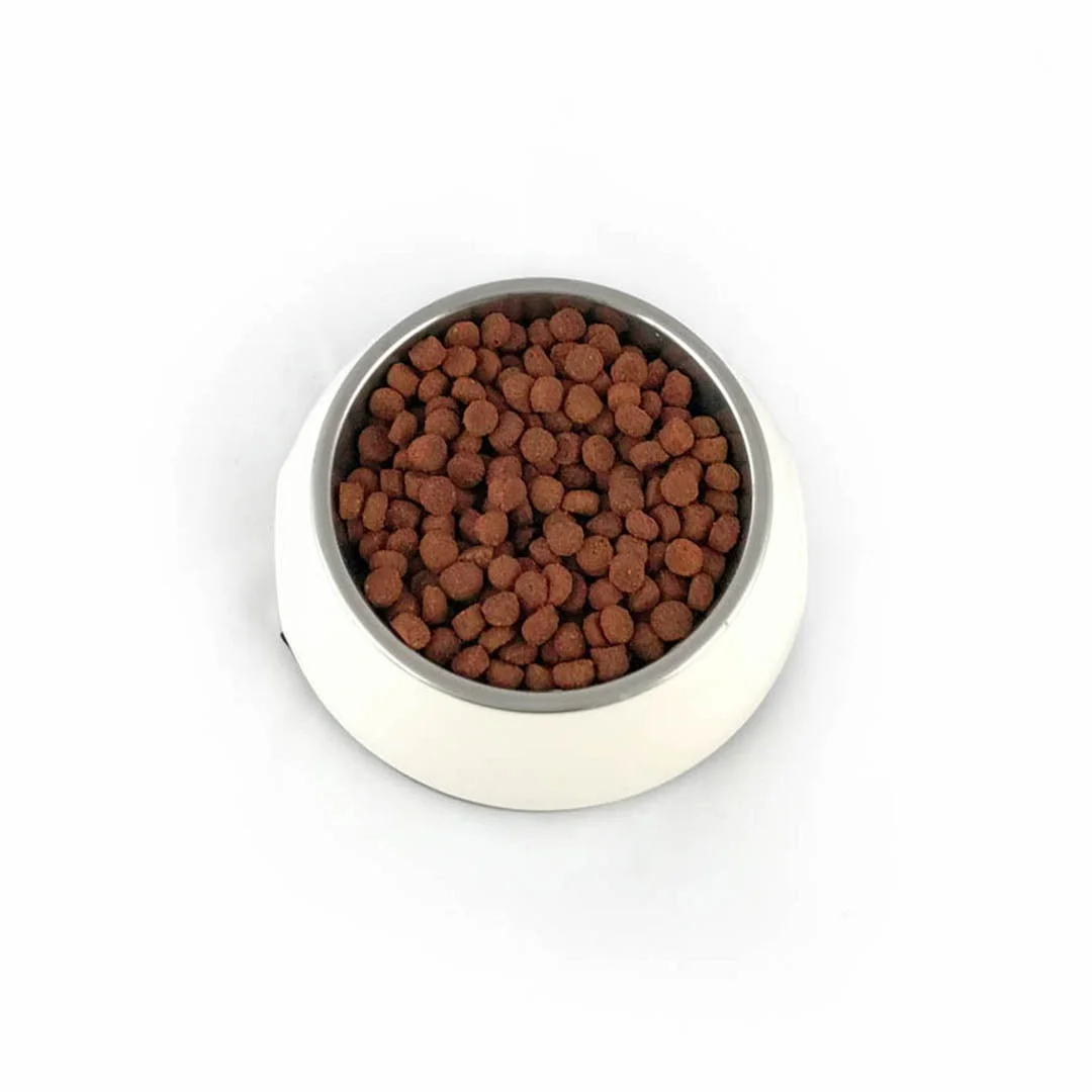 Skład: suszone mięso 51% (wołowina 26%, dehydratyzowany drób 20%, wątroba hydrolizowana 5%), ryż (17%), mąka kukurydziana, ziarno pszenicy, tłuszcz zwierzęcy, suszone drożdże browarniane, suszona pulpa buraczana (3%), całe suszone jaja , olej z łososia, ziarno siemienia lnianego (0,44%), ekstrakt z cykorii (0,27%) (źródło naturalnego prebiotyku), chlorowodorek glukozaminy (260 mg/kg), ekstrakt z Yucci Schidigera.