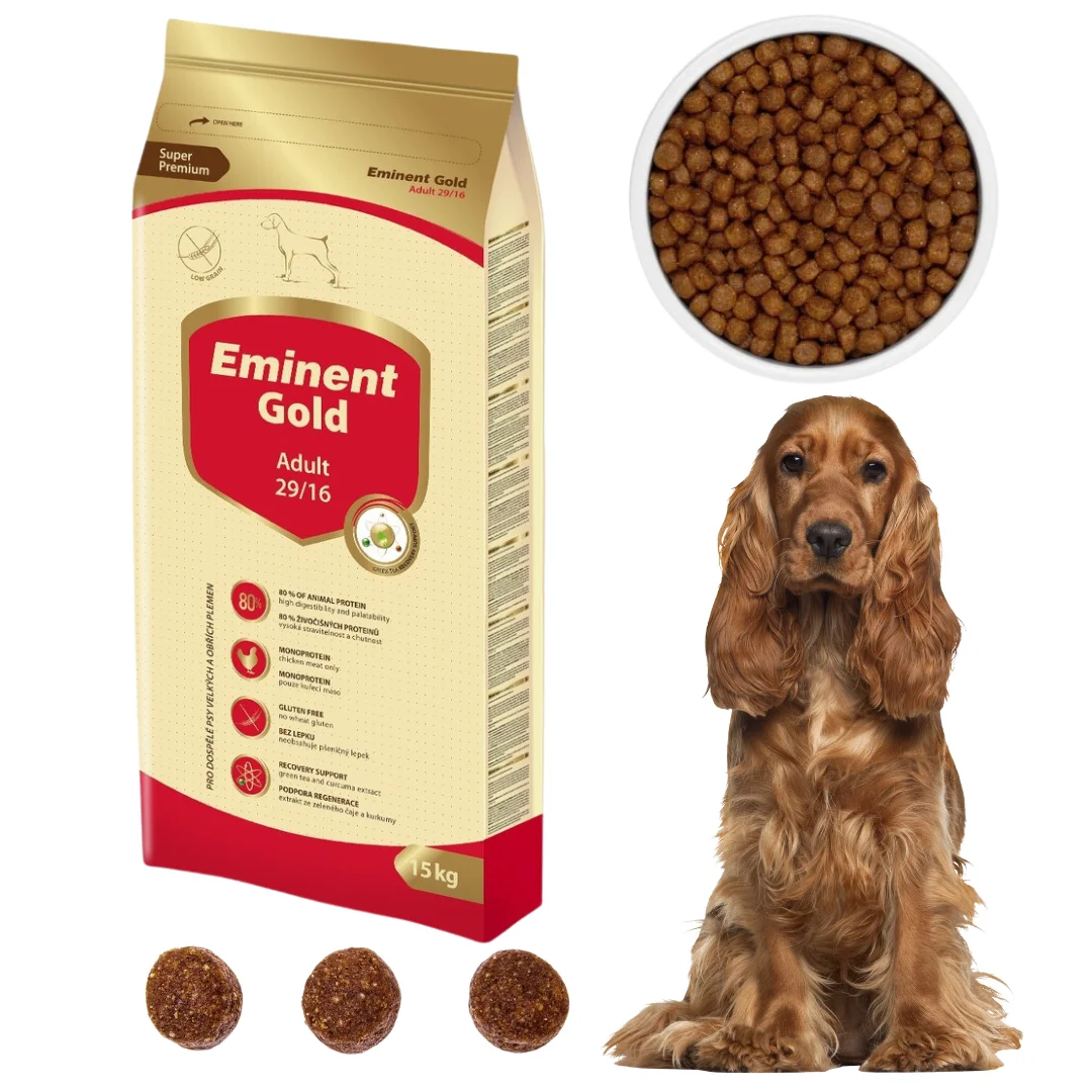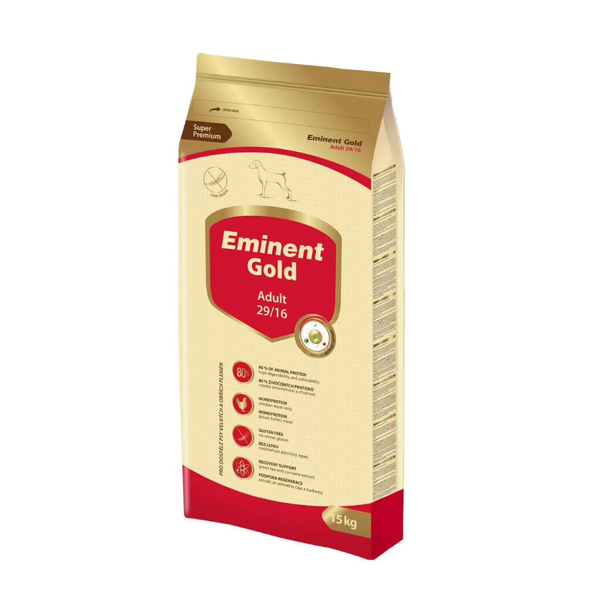 - Bez glutenu Karmy Eminent Gold nie zawierają pszenicy ani żadnych innych zbóż zawierających gluten, który często powoduje problemy trawienne