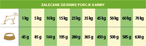 Produkty z mięsa jagnięcego użyte w 1 kg karmy odpowiadają 1000 g surowego mięsa.