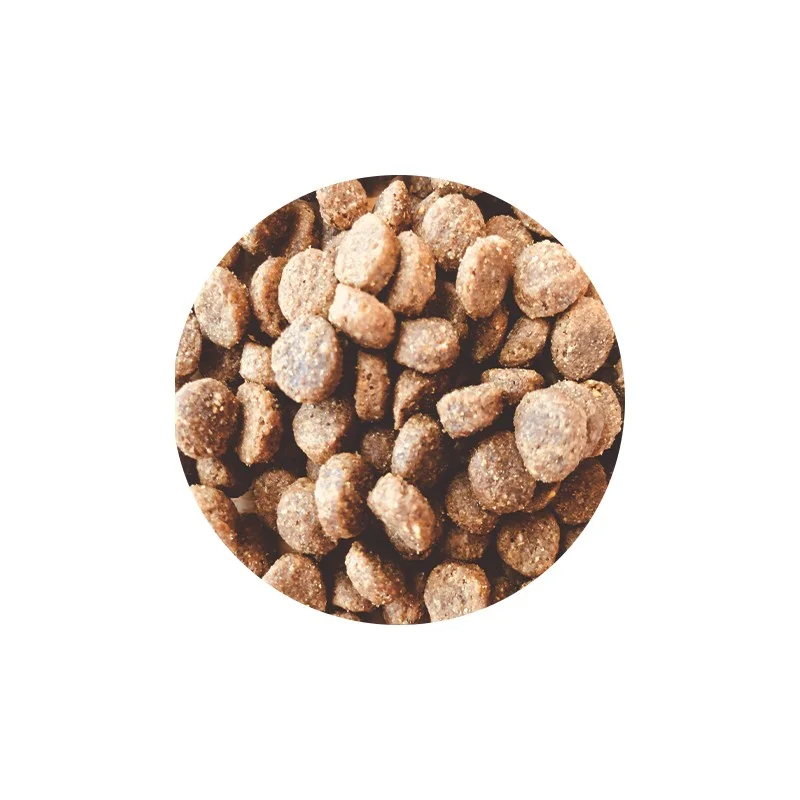 Skład: mięso z kurczaka 1,4 kg na 1 kg karmy, ryż z kukurydzą, tłuszcz z kurczaka, pulpa buraczana, suszony łosoś, nasiona lnu, hydrolizowana wątroba kurczaka, olej z łososia, drożdże, karob, minerały i witaminy, białko kurczaka, chrząstka (źródło chondroityny), skorupiaki (źródło glukozaminy), L-karnityna, lecytyna, inulina (FOS), tauryna.