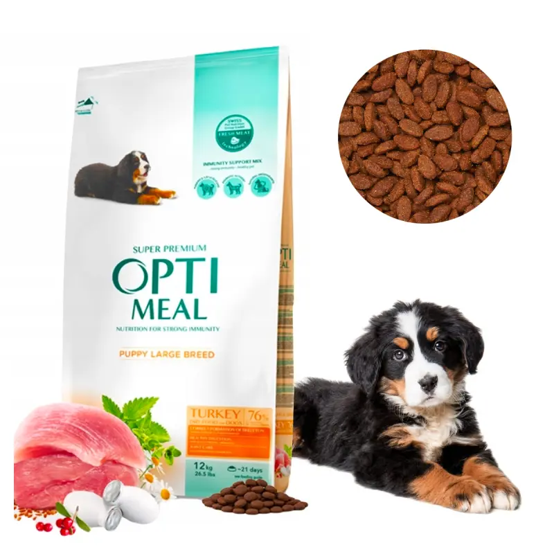 - Karma Opti Meal zaspokaja zwiększone zapotrzebowanie kaloryczne organizmu szczeniąt dla szybkiego wzrostu i aktywnych gier.