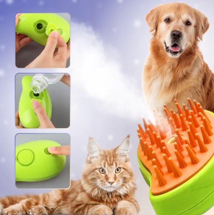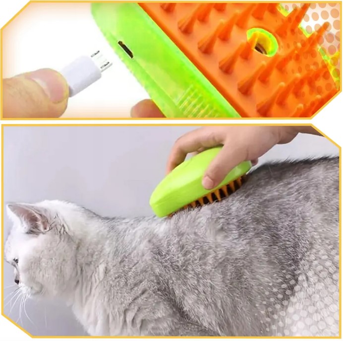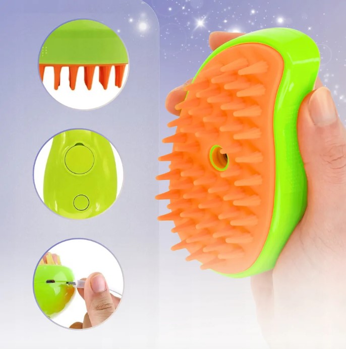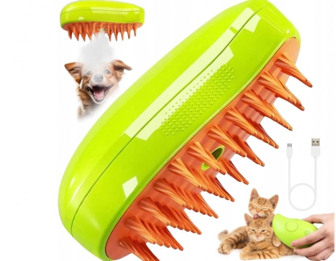 Szczotka parowa dla psa kota do czesania, wyczesywania sierści i włosów – ładowana na USB.