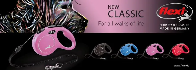 Smycz automatyczna na lince niemieckiej marki flexi z najnowszej linii New Classic.