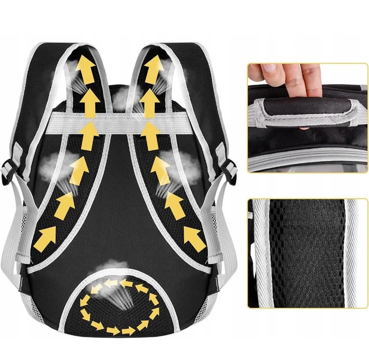- Wygodne szelki – Regulowane i przewiewne, zapobiegające poceniu się podczas noszenia.
