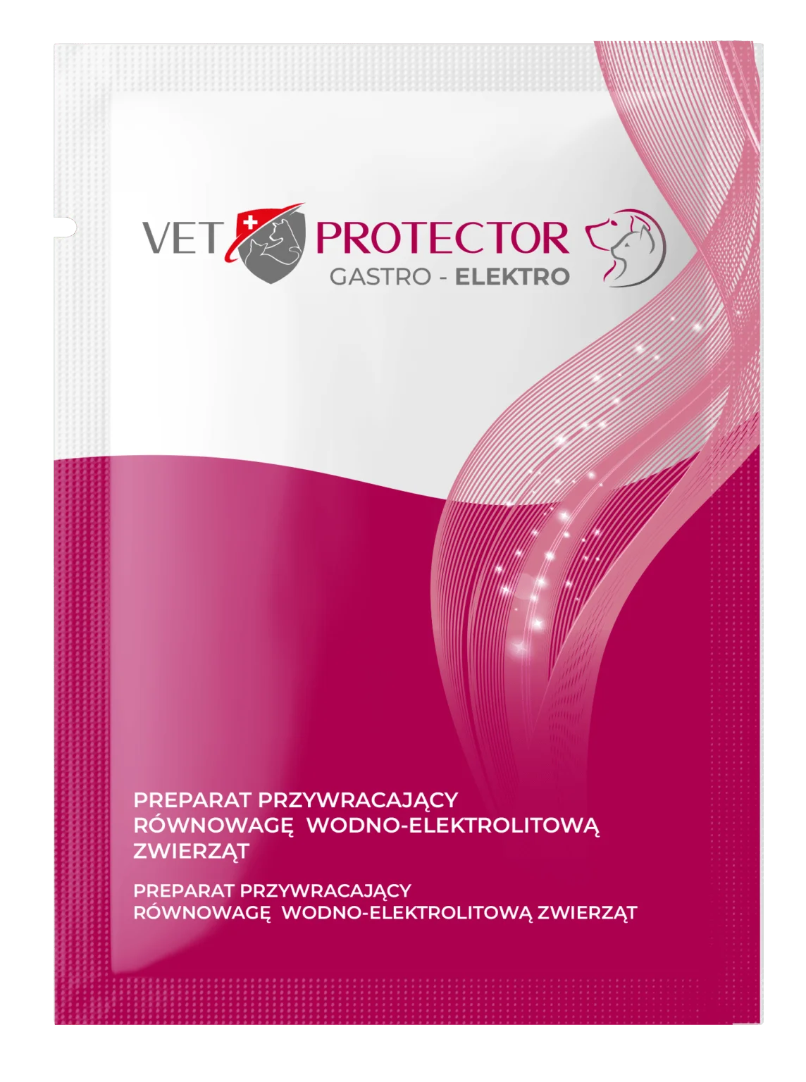 VET PROTECTOR® GASTRO – ELEKTRO 3 g – to preparat stabilizujący równowagę wodno-elektrolitową w postaci proszku rozpuszczalnego w wodzie. Pakowany jest w saszetki o gramaturze 3 gramy.