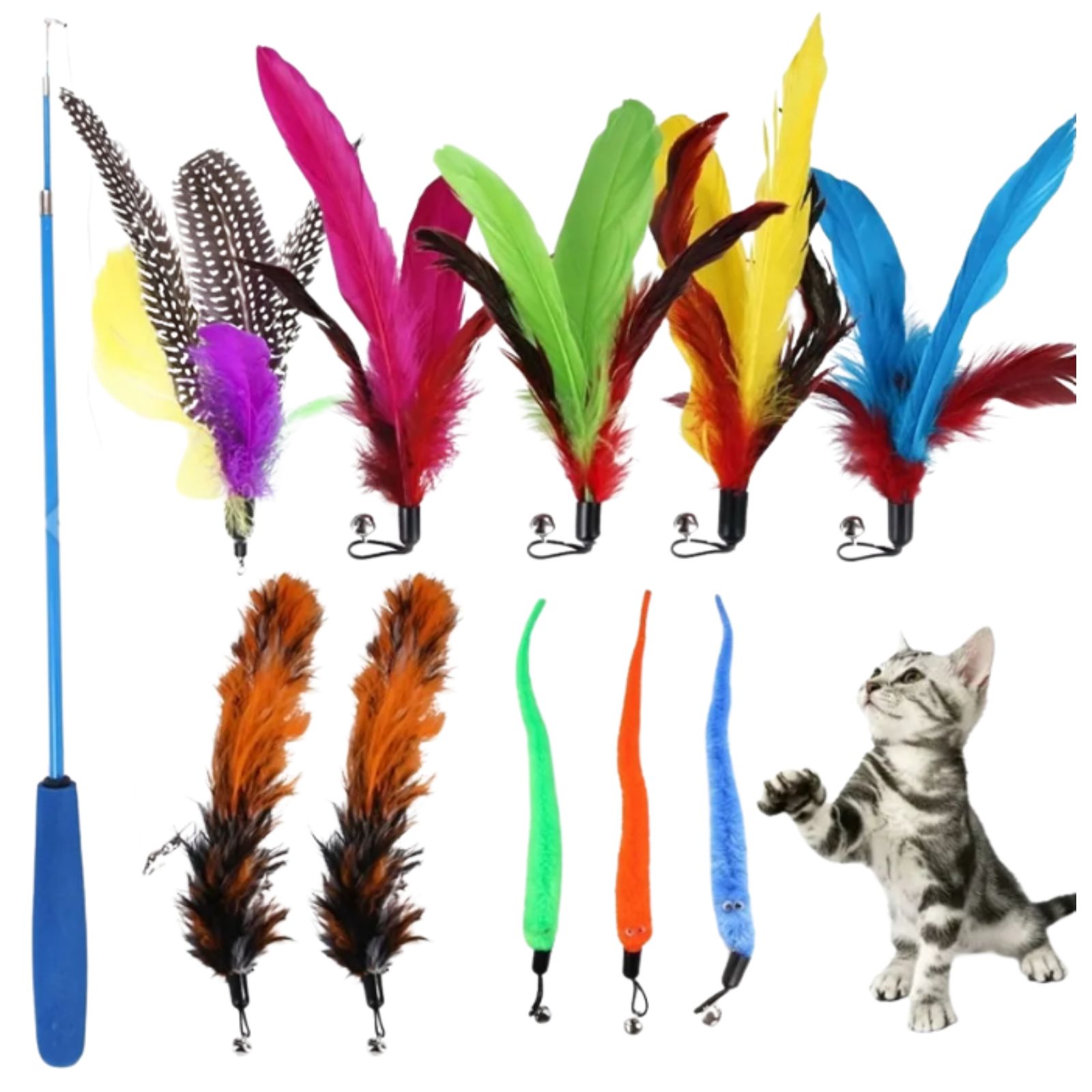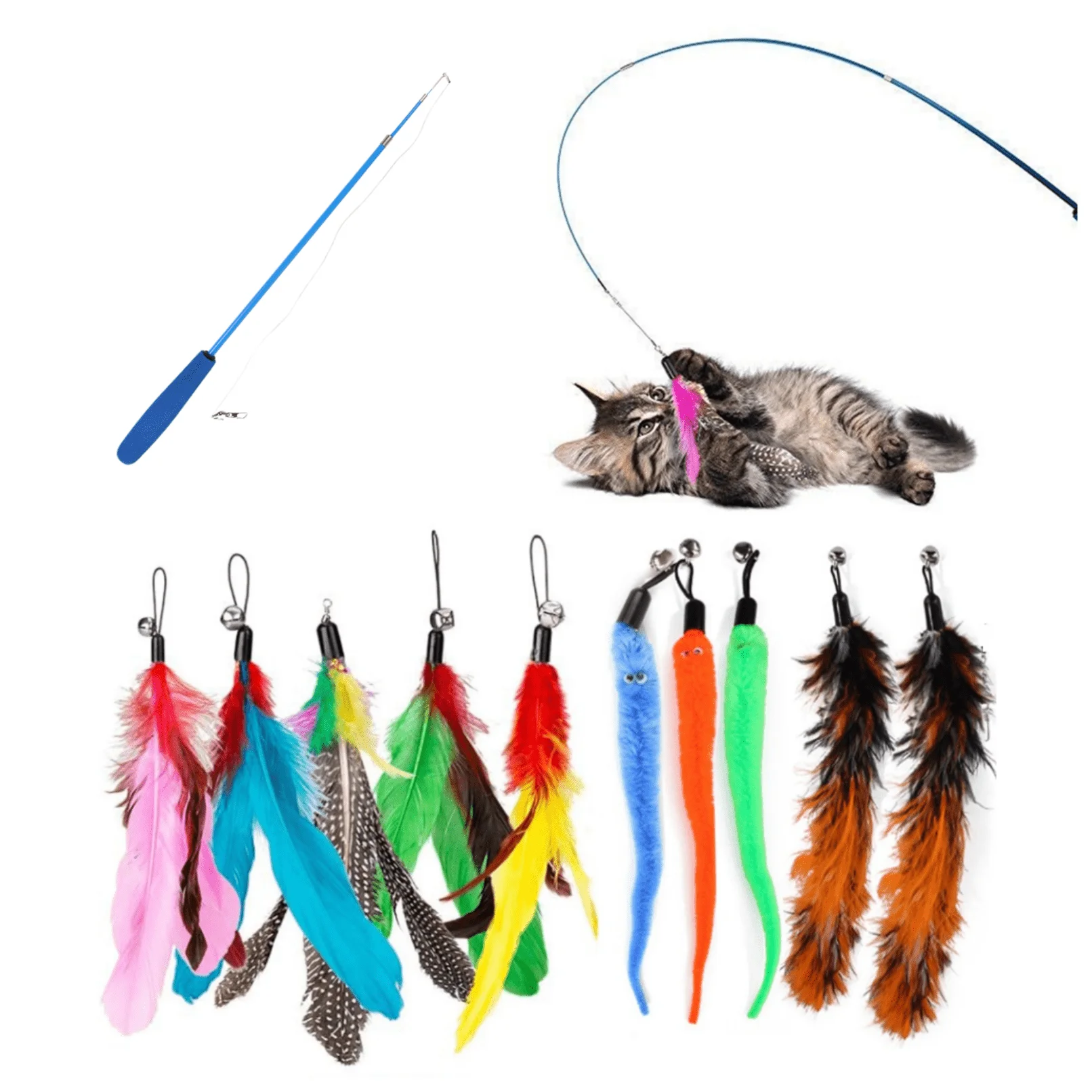Wędka dla kota z piórkami została stworzona specjalnie dla pobudzenia jego instynktów łownych.