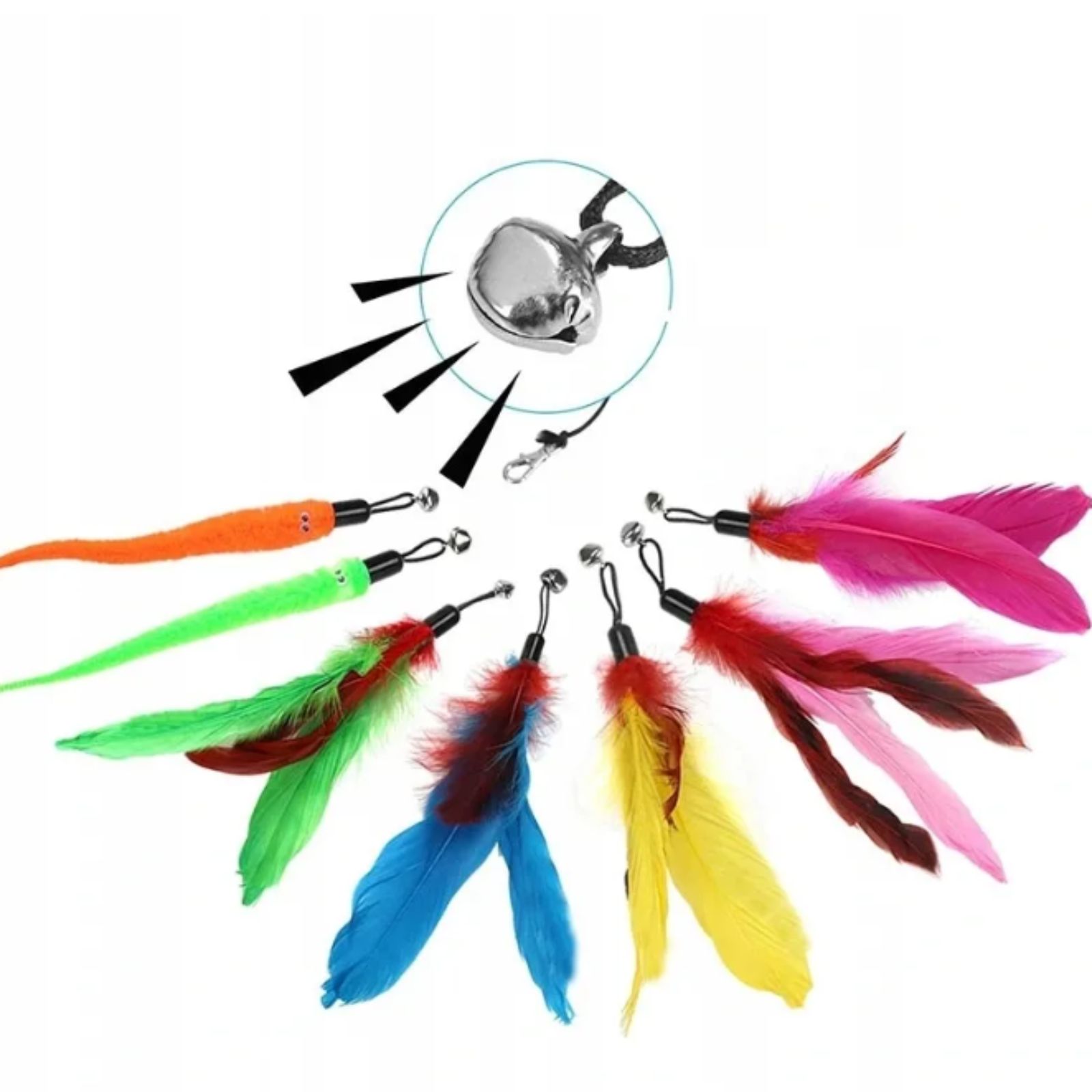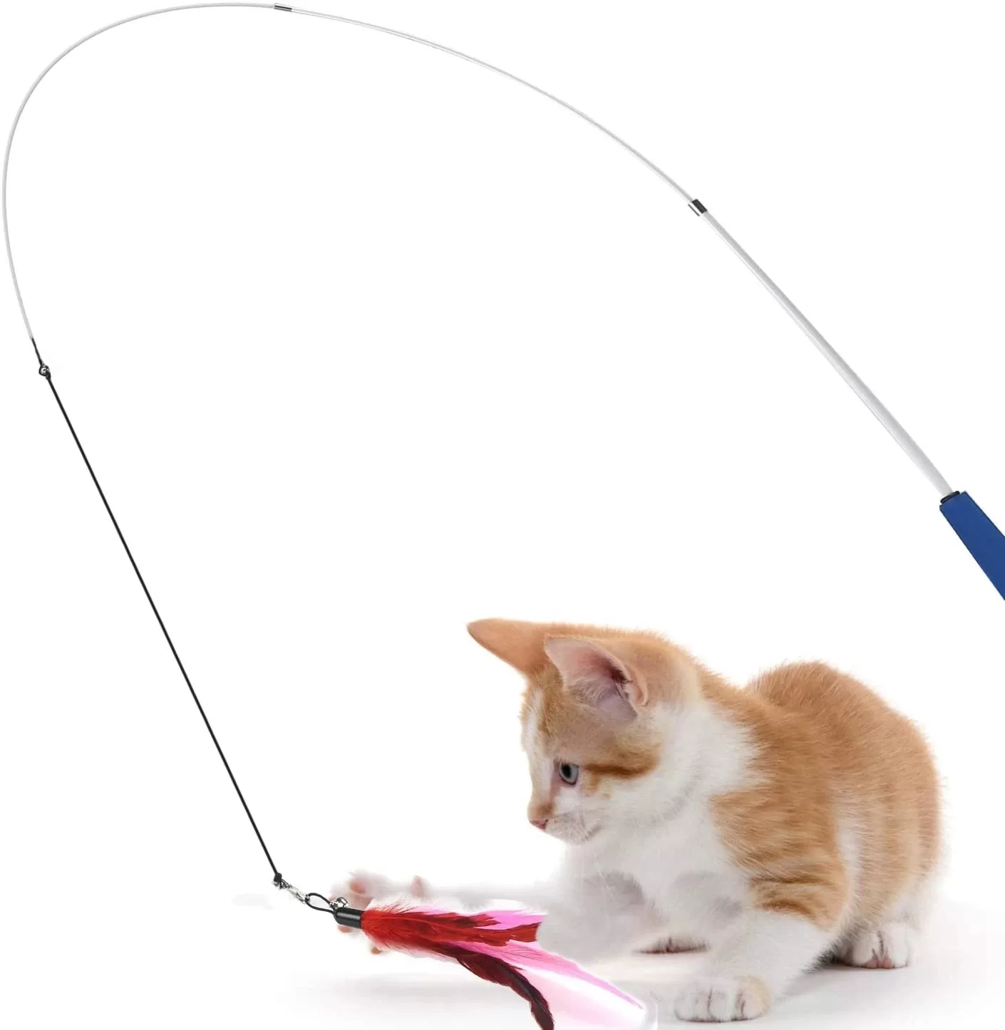Wędka posiada długi uchwyt, który zmniejsza ryzyko zadrapania przez kota. Zabawka posiada ogon wykonany z piórek, a także dzwoneczek w środku który jeszcze bardziej zachęca kota do zabawy.