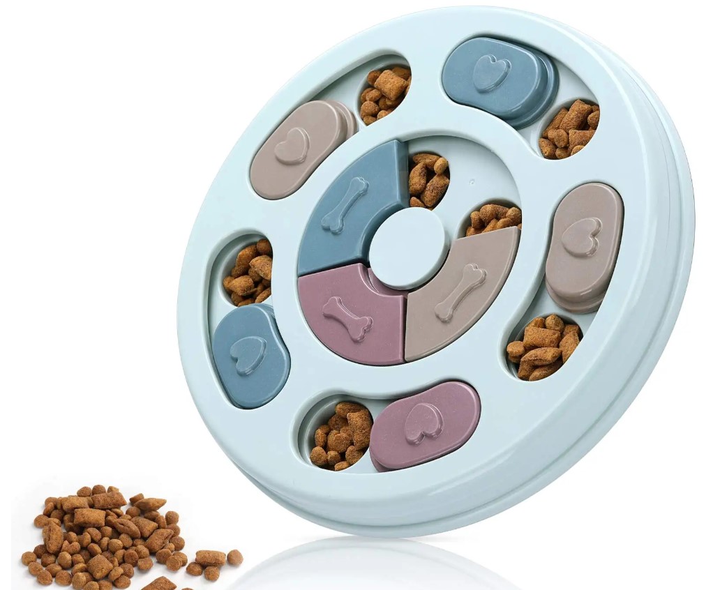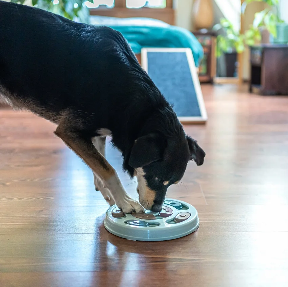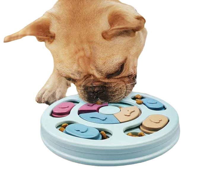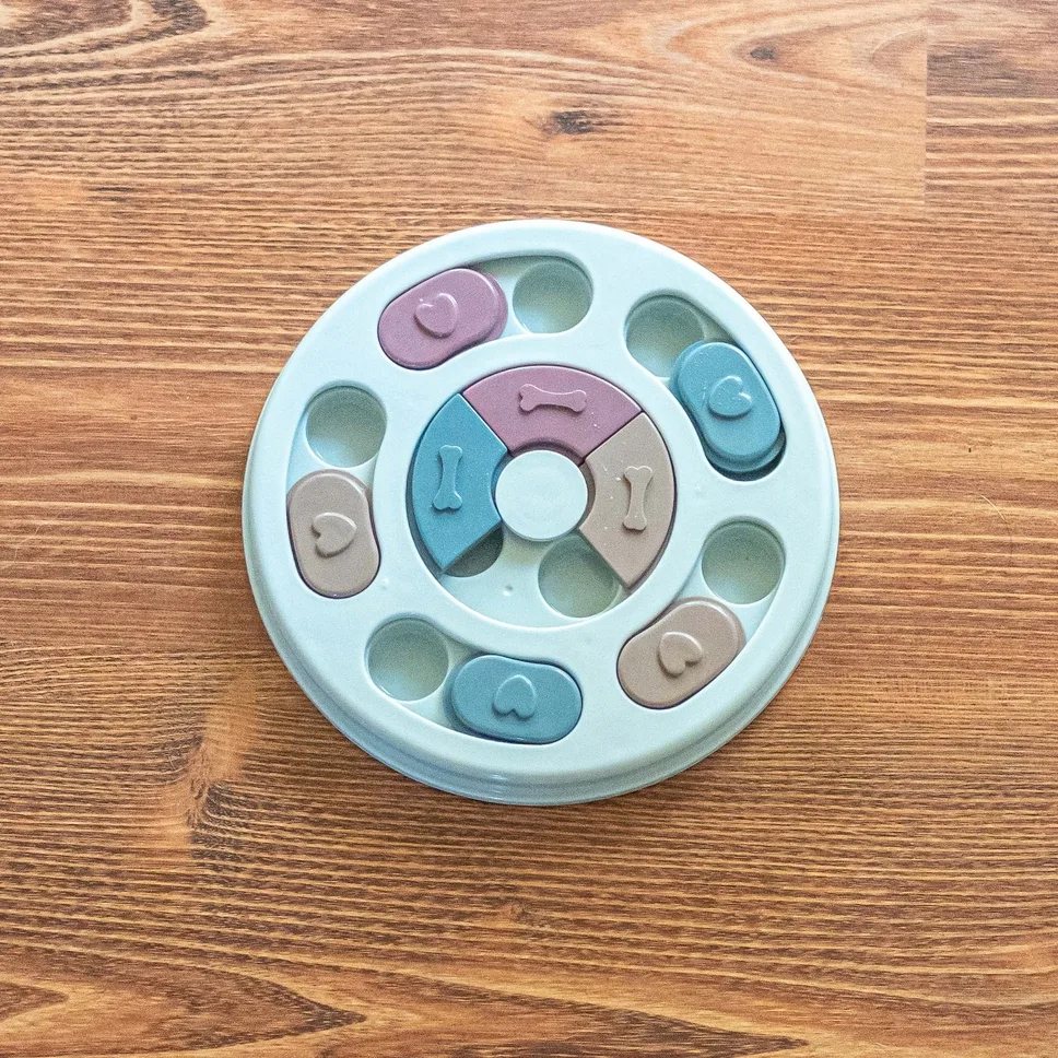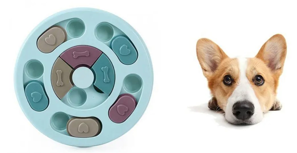 Zabawka edukacyjna dla psa na inteligencję to prosta łamigłówka logiczna.